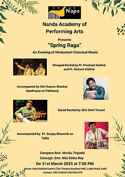 NAPA (Nanda Academy of Performing Arts) is dedicated to the promotion and preservation of Indian classical music and dance. Our offerings include captivating performances and comprehensive teaching programs designed to foster a vibrant community of musicians and enthusiasts.